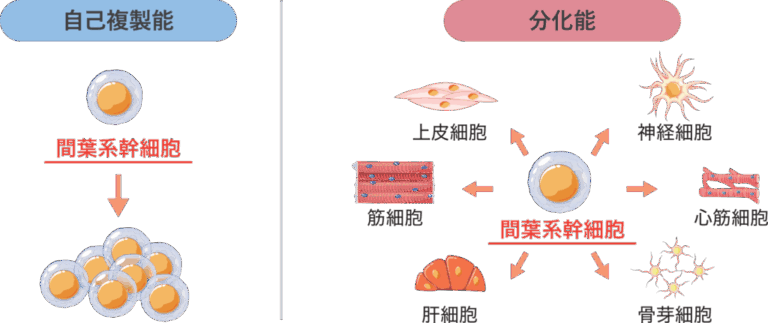 幹細胞は、自らを複製し、さまざまな細胞に分化できる能力をもつ細胞です。痛みに対して、対症療法が一時的に症状を抑えるのに対し、幹細胞治療は損傷や病気の原因に直接アプローチし、体の自然な修復力を引き出す根本的な治療を目指します。